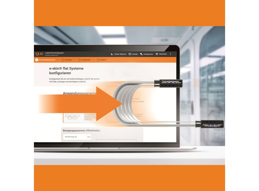 The design of a cable guide system for cleanrooms, also referred to as Clean Cable, is complex: it is necessary to take numerous requirements into account, select suitable cables and create technical drawings. This process requires expert knowledge and has so far involved a lot of time and manual effort. This is exactly where igus comes into play with the new e-skin flat configurator. Users can design a flat cable guide system...