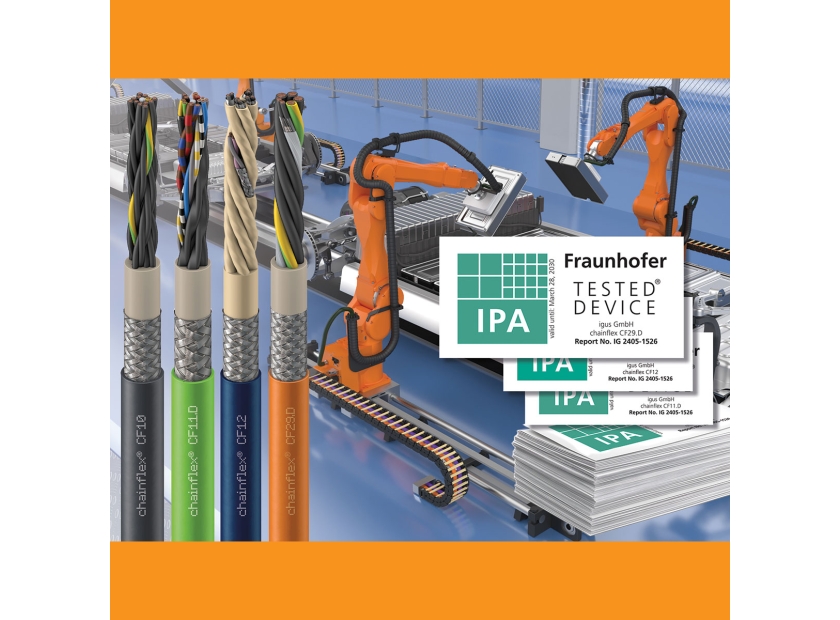"The collaboration with Fraunhofer IPA gives our customers the certainty that our solutions work reliably even under the most stringent conditions," says Rössel. The specifically developed halogen-free TPE plastic outer ensures maximum cleanliness and durability of the cables. In addition, igus provides a four-year guarantee on all its products with a service life calculation. What makes it special is that the TPE cables are catalogue parts that can be ordered from stock, starting at one metre and without cutting charges. igus also waives minimum quantity surcharges and packaging costs. In addition to chainflex cables, the certified igus portfolio includes other products for dry cleanrooms. These include the energy chains in the series E6, e-skin soft, e-skin flat and easy chain E14. They have also been certified for cleanroom Class 4 and offer ideal solutions for applications in battery production, semiconductor manufacturing and other sensitive industrial sectors where cleanliness and durability are crucial.