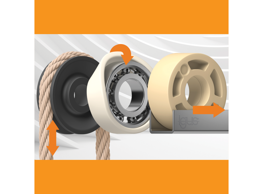 Three at one fell swoop: due to high demand, igus is launching new pulleys, skate wheels and roller adapters in series production, which were previously only available as customised products. Manufactured from high-performance plastics, the new components are an economical alternative to classic metal counterparts in numerous applications. They are lubrication-free, dirt-resistant, durable, maintenance-free, vibration-dampening, and ensure quiet operation.